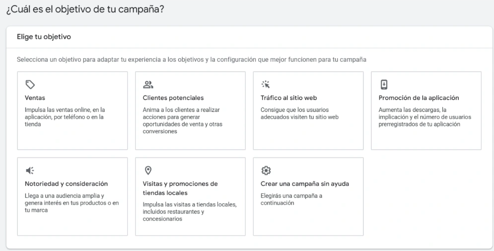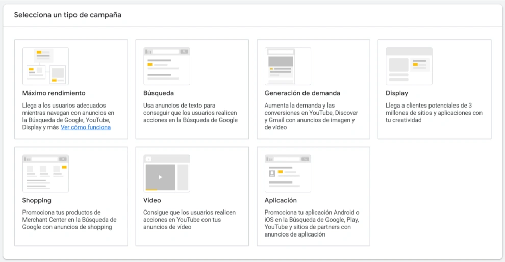 Tipos de campañas en Google Ads